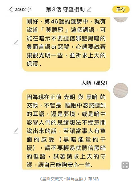 對~我一開始寫這部小說(星際對話文),的確有想過......可以幫助別人,也想傳送我的「祝福」給大家,也是懷抱著「善意」去寫作 .